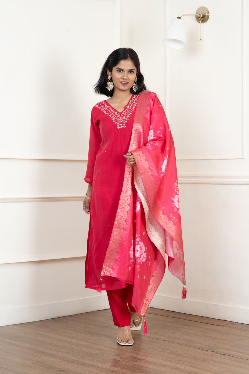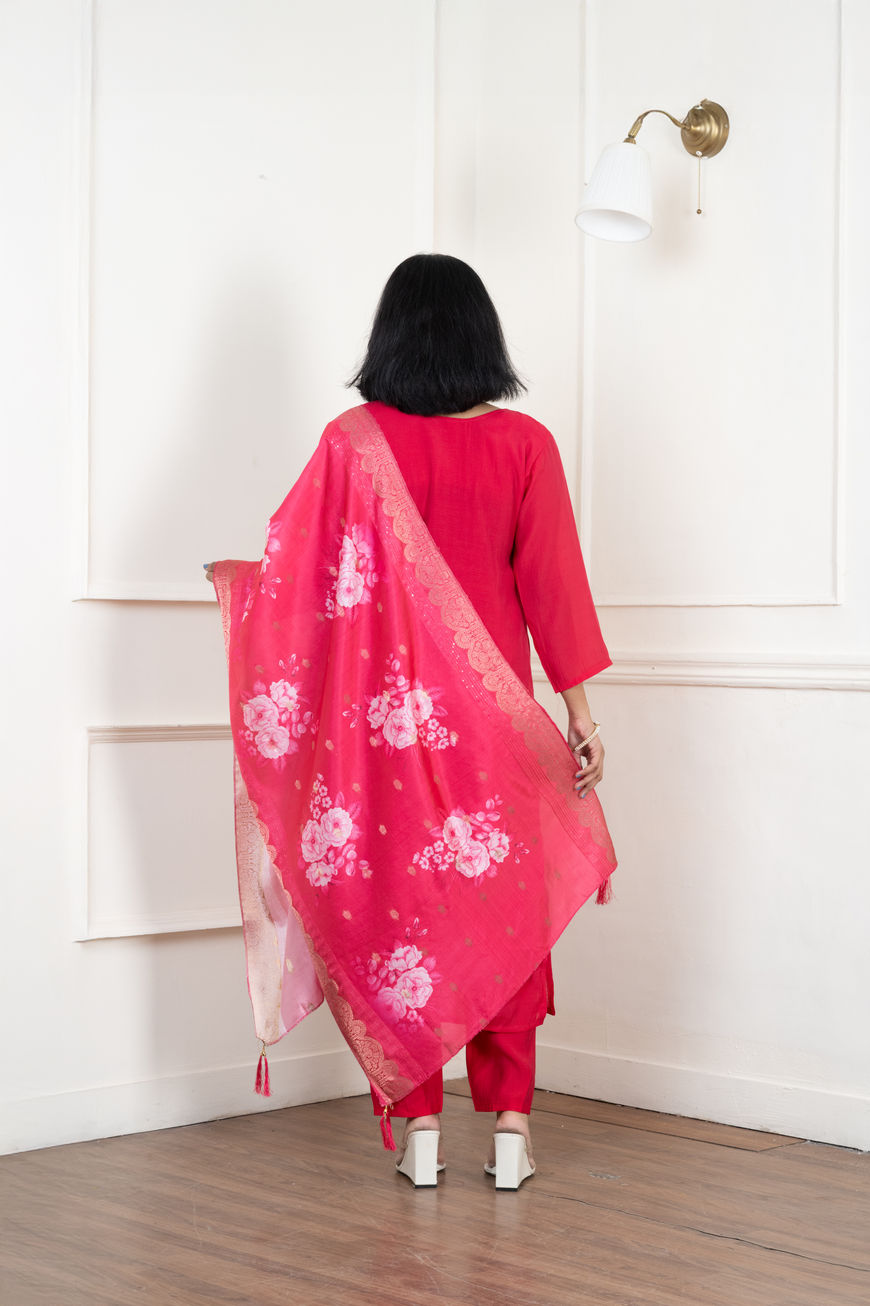Gulnaar Crimson Embroidered Kurta Set